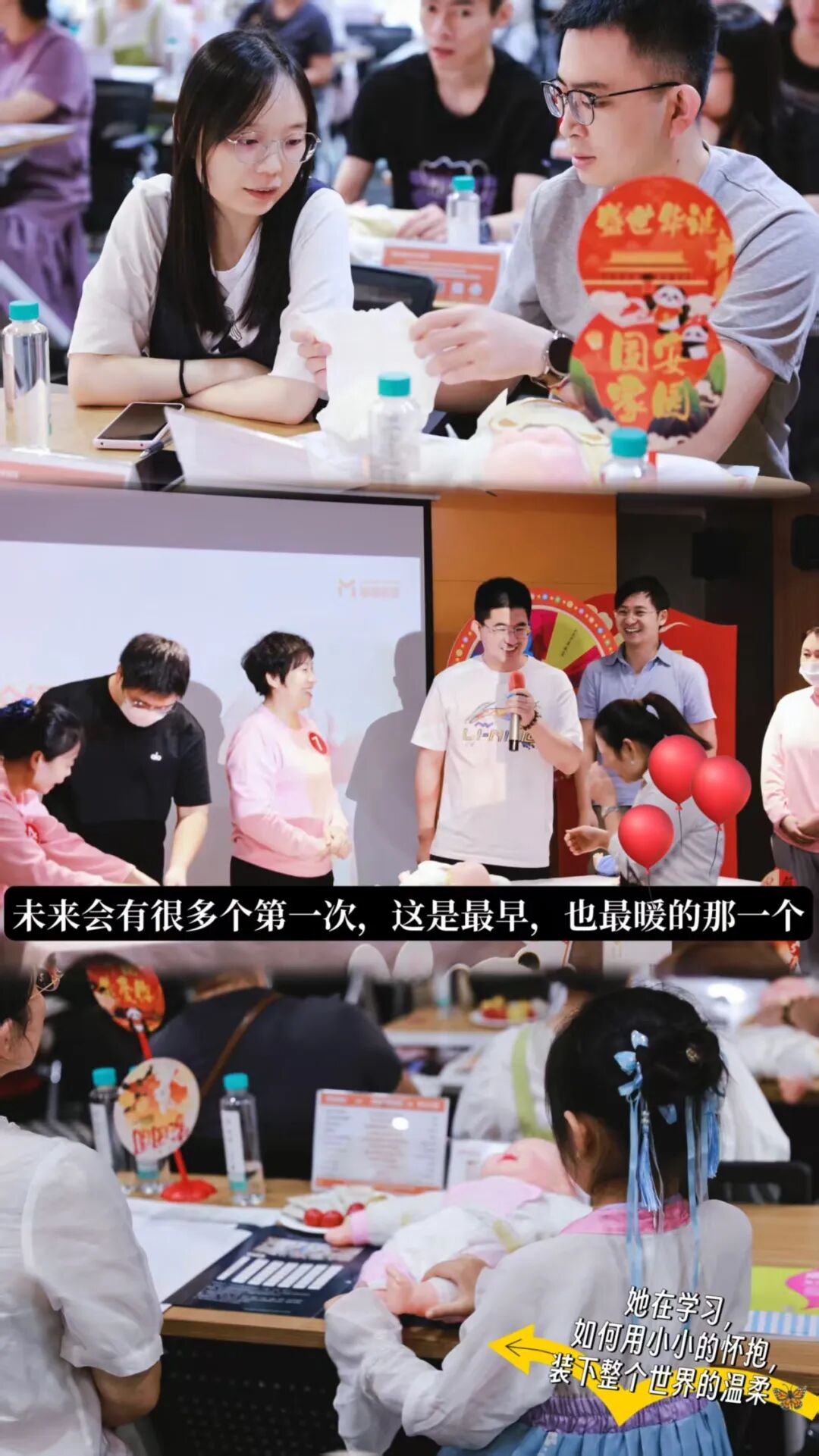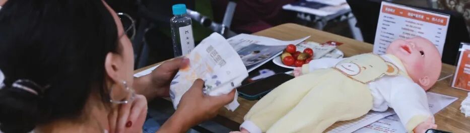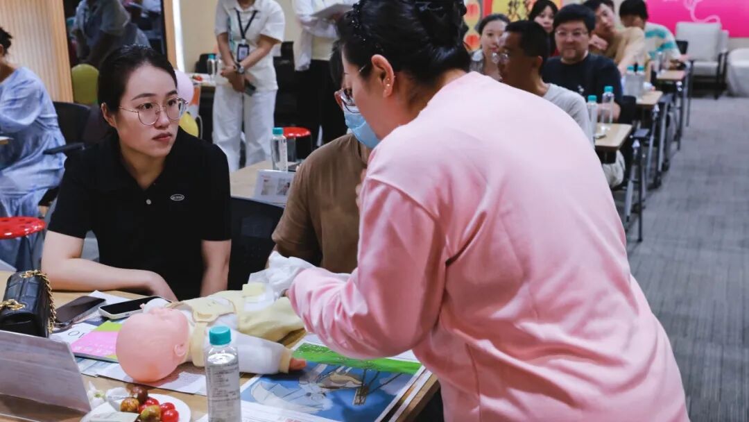 更让人惊喜的是,有个陪妈妈来的小朋友,蹲在旁边看完整场比拼后,她主动学着老师的样子,轻轻托着“宝宝”的屁股,虽然动作稚嫩,却格外专注。原来“爱与责任”从来都不是成年人的专属,也能在孩子眼里,长成*可爱的模样。