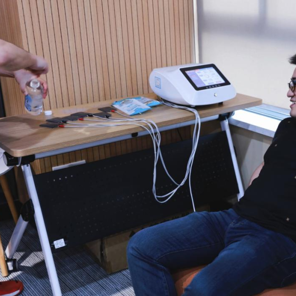 或许是节日的氛围格外动人,也或许是第*位勇敢尝试的宝爸点燃了勇气之火,现场竟掀起了一股小小的“体验潮”。爸爸们带着好奇,更带着对伴侣的理解之心,坐上了体验椅。看着他们从轻松到眉头紧锁,再到忍不住握紧拳头、甚至倒吸一口凉气……那一刻,无声的共情在空气中流淌。