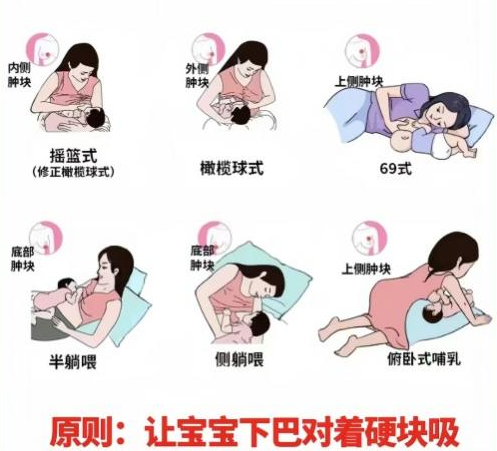 积乳硬块在哪,就让宝宝的下巴正对着硬块