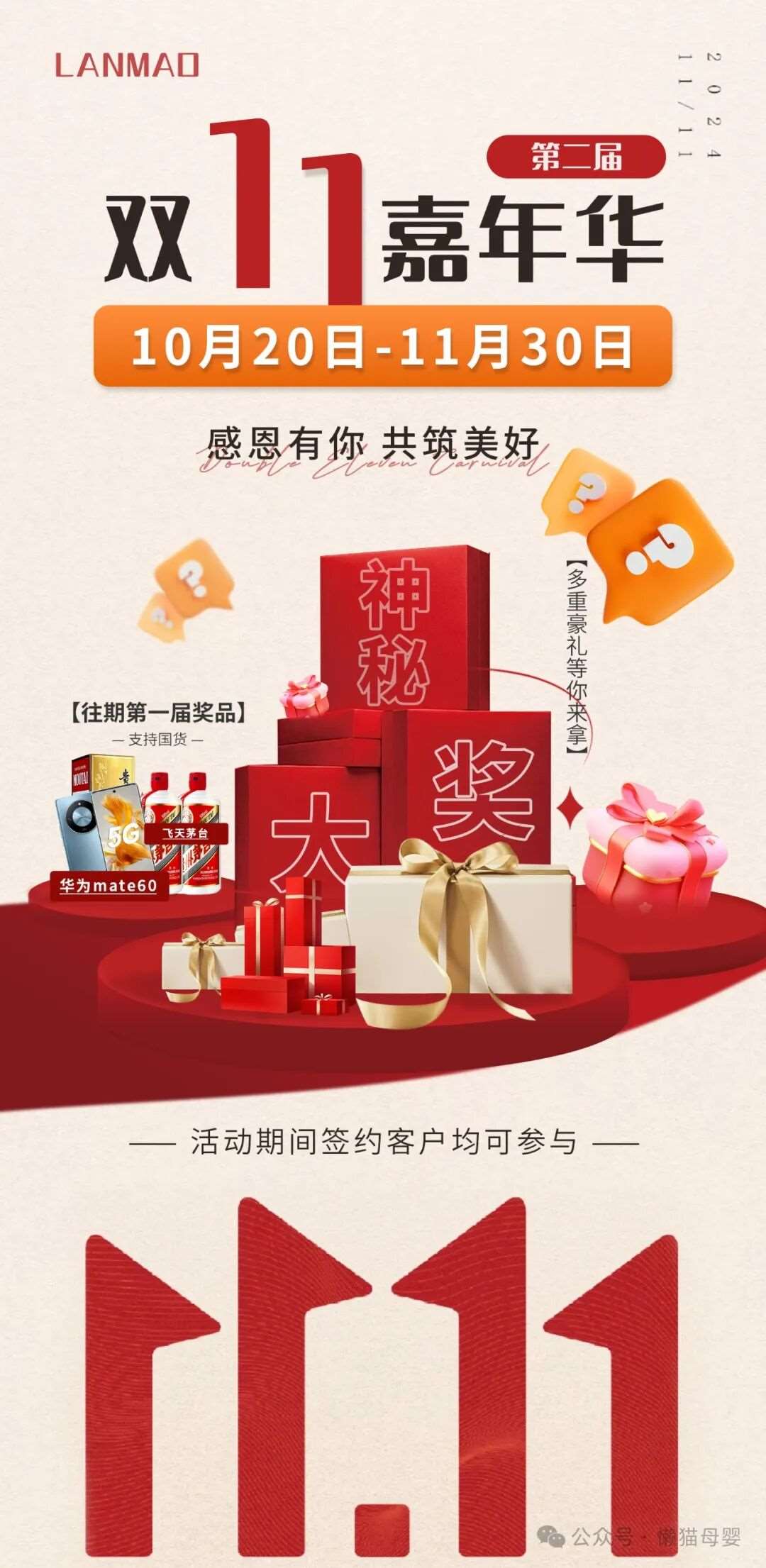 基于去年的成功经验与热烈反响,今年懒猫母婴更是倾尽全力,致力于打造一场Plus版嘉年华盛宴。我们不仅对抽奖规则进行了全面优化,确保其更加公平合理,还精心策划了更为丰富多元的主题活动,五城、四品牌联动,包括母婴、育儿、产康、学院,在接下来的几周里您都可以体验到不同主题的欢乐。奖品设置更是惊喜连连,旨在回馈每一位支持我们的客户。