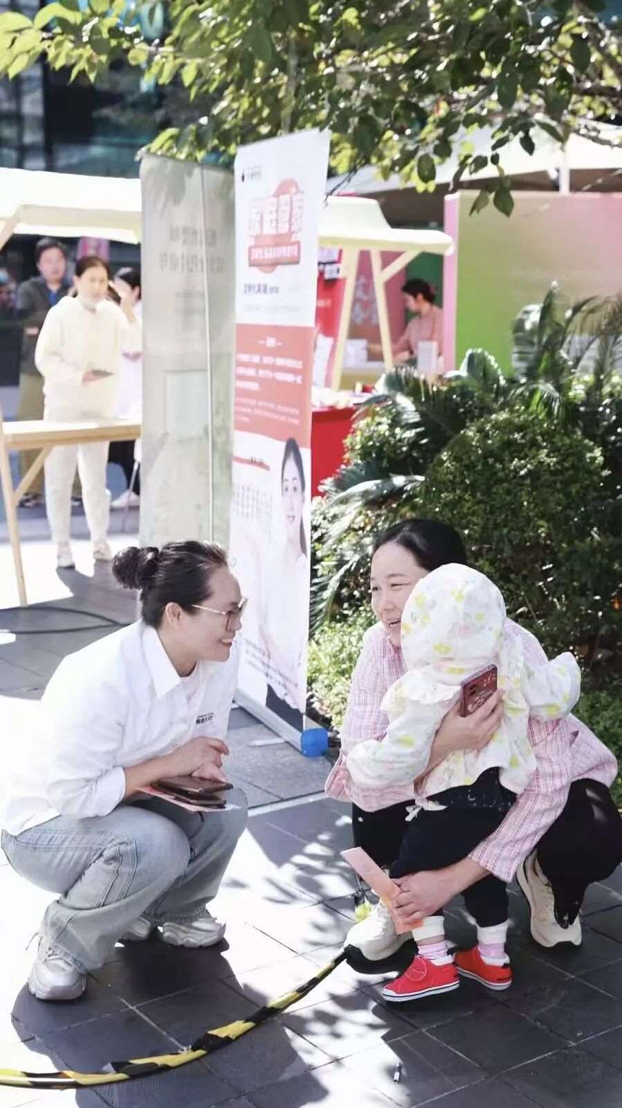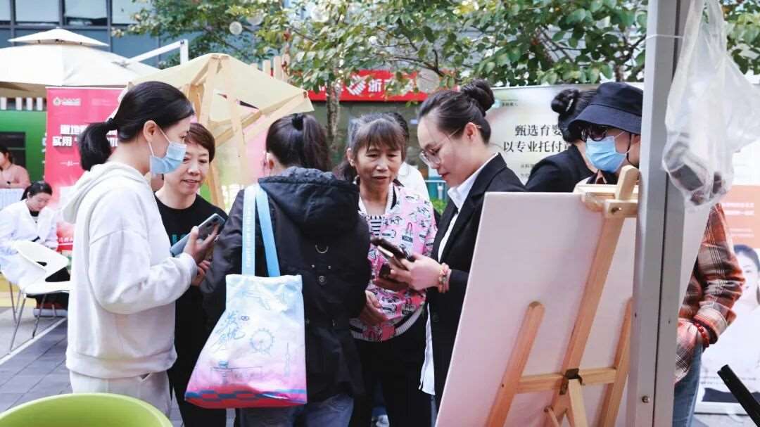活动刚开始,我们的咨询台前就围满了人。有满怀期待的准妈妈,仔细询问着月嫂服务的细节,有新手爸妈,对如何挑选一位靠谱的育儿嫂充满了关切,还有不少家庭对产后康复表现出了浓厚的兴趣。