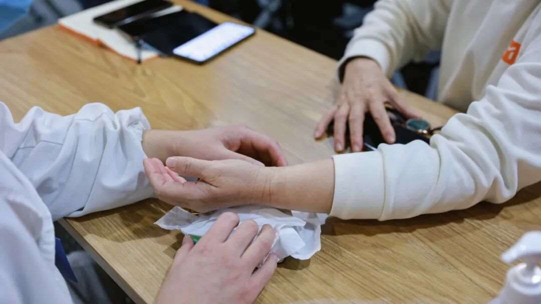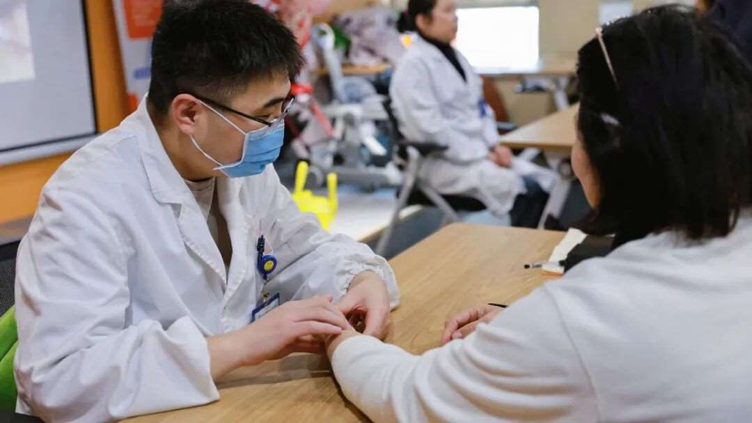 → 中医问诊:经验丰富的中医师面前,很快排起了长队。大家纷纷就自身关心的问题进行咨询,医师则耐心把脉、望闻问切,提供一对一的调理建议。
